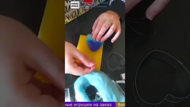 МК валяние сердца (felting, handmade, валяние из шерсти, ручная работа, сухое валяние)