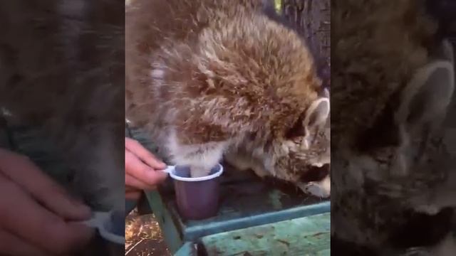 Енот Тема полощет лапы в кружке
