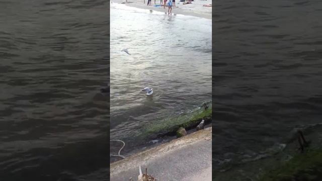 Прикольные чайки плавают на море