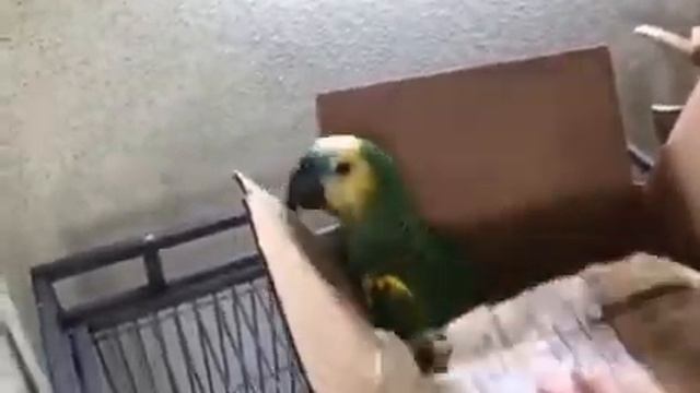 Синелобый амазон в коробке