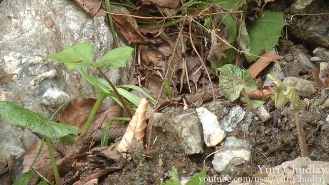 Уж кушает лягушку.