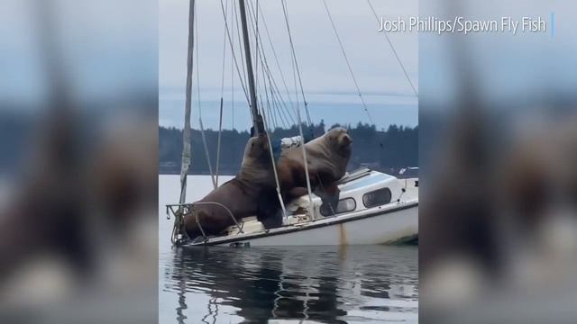 Huge Sea Lions Almost More Than This Boat Can Handle In Waters Near Olympia
