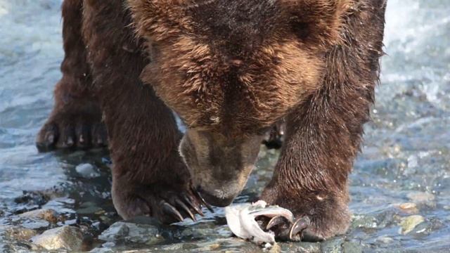 Close up of Brown Bear Eating Fish at McNeil River Alaska