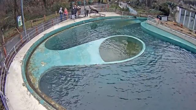 Обед-тренировка тюленей,чайки пытаются рыбку перехватить #Венгрия
