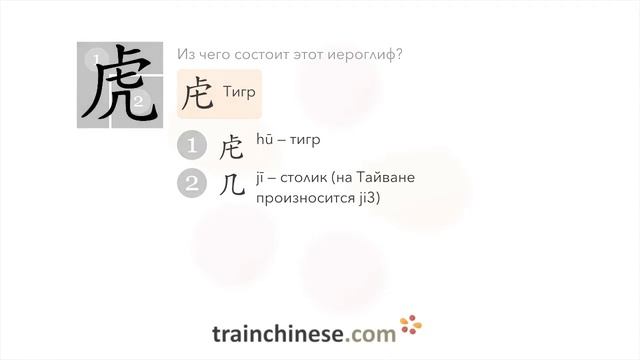 Как пишется 虎 (hǔ) – тигр — порядок черт, ключ, примеры и произношение