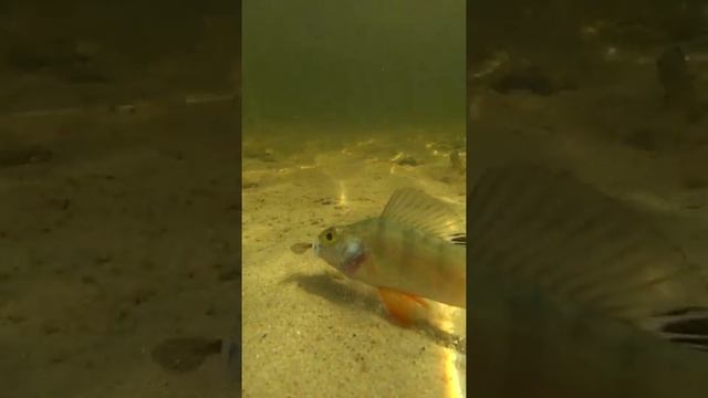 Реакция хищника. Окунь атака живца. Подводная съемка. Реакция рыбы. #shorts