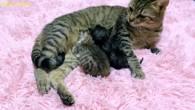 Old Cat who don't have milk Nursing to Two Tiny Baby Kittens
