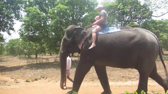 Индийский слон. Катание годовалой Анютки верхом на слоне. ГОА.