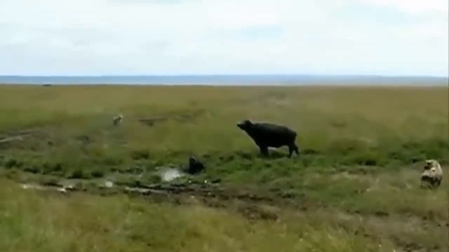 Супер! Мать буйвола защитить ребенка буйвола от нападения 6 гиен Львы против Бородавочника