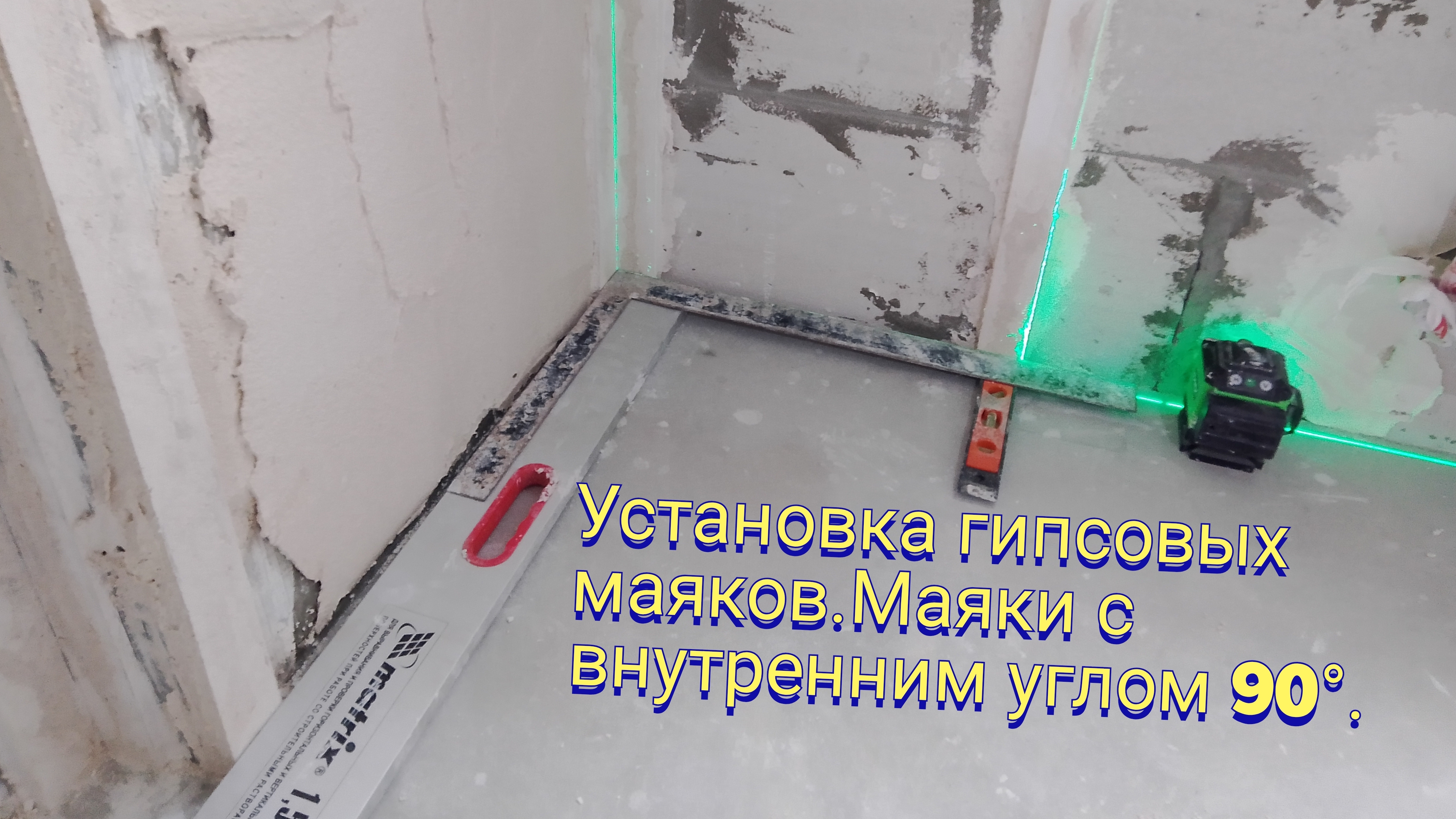 Угол 90°.Установка гипсовых маяков по лазерному уровню.