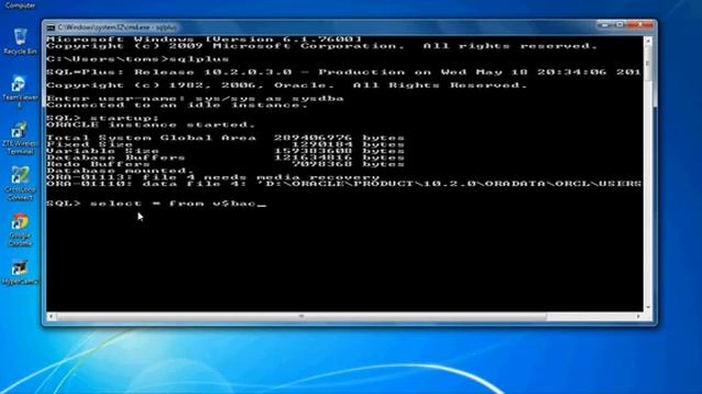 ORA-01113: file # needs media recovery ORA-01110