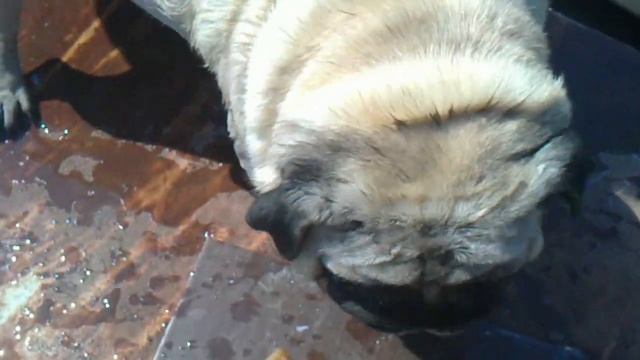 Мопс учится плавать