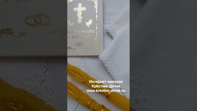 Венчальный набор: свадебный рушник, салфетки, свечи, свидетельство о венчании.