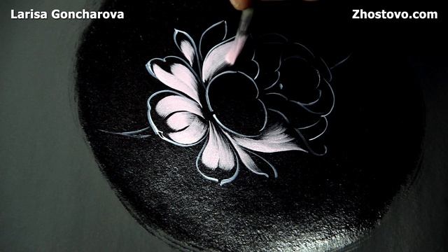 Бликовка Розы в Жостовской росписи. Художник Лариса Гончарова из Жостово