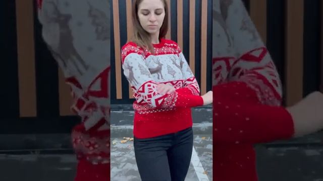 Теплый новогодний новый свитер без горла женский красный с оленями (020)