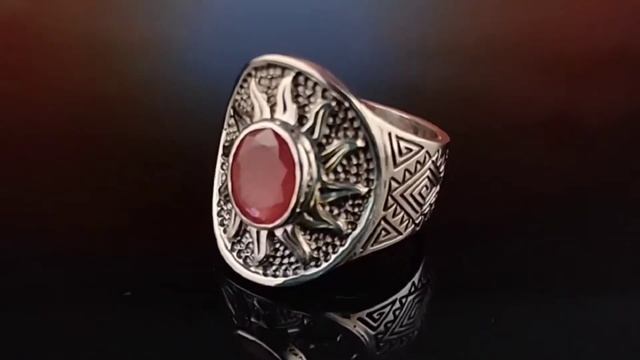 Кольцо - оберег Солнце с природным рубином и сакральной символикой!