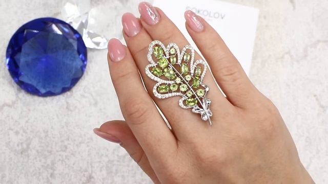 Серебряная брошь SOKOLOV с фианитом и хризолитом 92040096