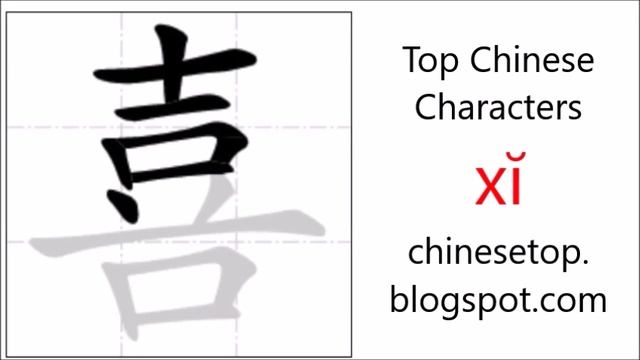 Chinese character 喜 (xĭ, happy) with stroke order and pronunciation