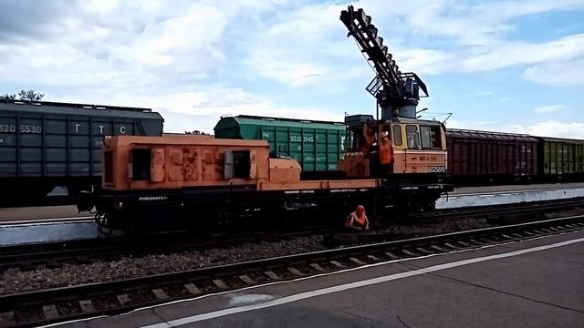 Железная дорога Сибири. Работа железнодорожного крана на станции Рубцовск Алтайского края.