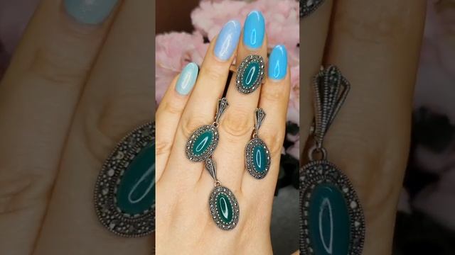 Хризопраз в капельном серебре ? 4000р?р.18 #хризопраз #капельноесеребро #марказит