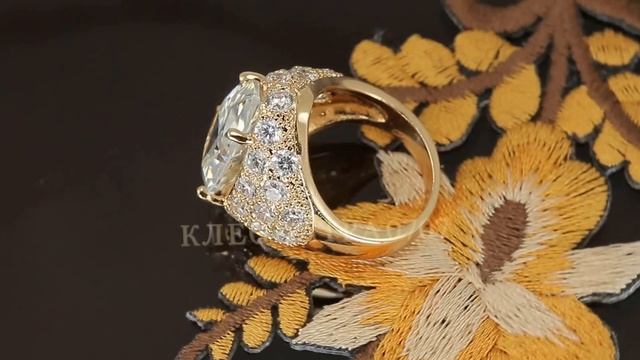 Массивное кольцо с множеством фианитов, покрытое золотом