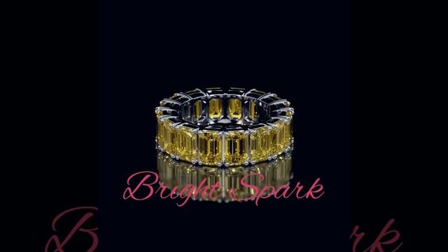 Кольцо белого золота с желтыми муассанитами изумрудной огранки Holly 9,6 карата от Bright Spark
