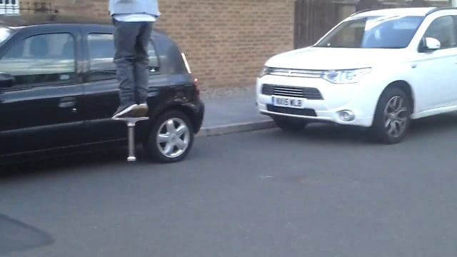 Super dangerous pogo stick jump
