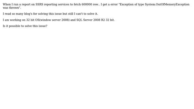 SQL Server 2008 R2 Reporting Services: "Exception of type System.OutOfMemoryException was thrown"