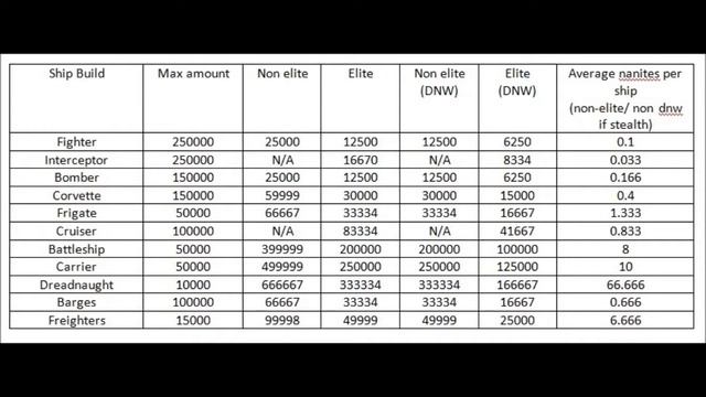 Colony Attack Research #4: Ship maximum build and cost (nanites) and vs nock nock
