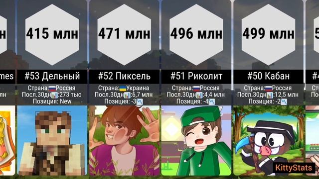 ТОП 100 РУССКОЯЗЫЧНЫХ МАЙНКРАФТЕРОВ ПО ПРОСМОТРАМ 2023