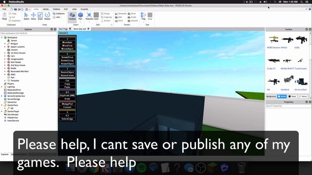 Roblox Studio- Please help, publish/saveing games problem!