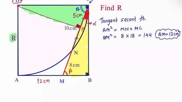 27) Quadrant is fitted inside a square. Find the radius of quadrant.