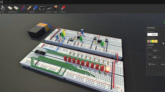 Crumb Electronic Simulator - 555 timer examples and LED Chaser