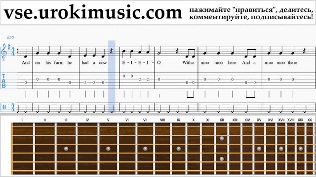 Как играть на гитаре Old MacDonald - Had a Farm Табы часть 2 um-b821