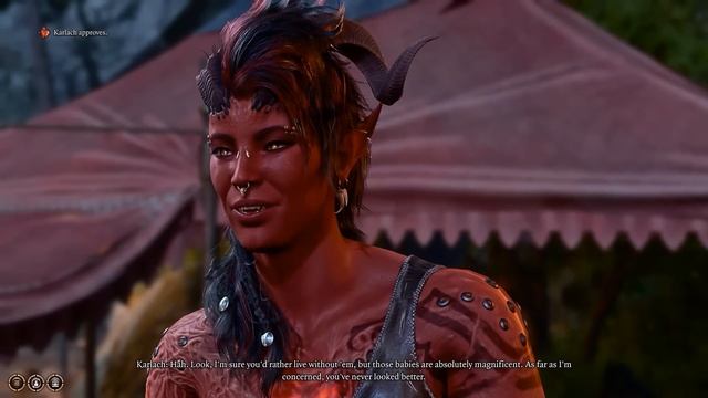 Wyll asks Karlach some advice on proper horn care
