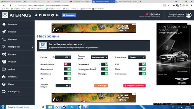 Как создать свой сервер в майнкрафт бесплатно! #2 (aternos)1.12; 1.11;1.10; 1.9 настройка атерноса