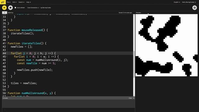 Caves Generation that ANYONE can do! (Cellular automata caves in P5js)