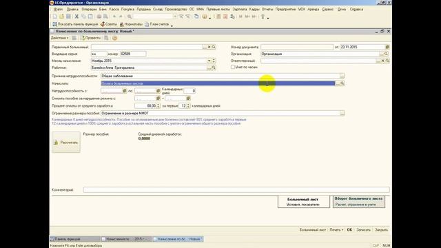 Начисление больничного
