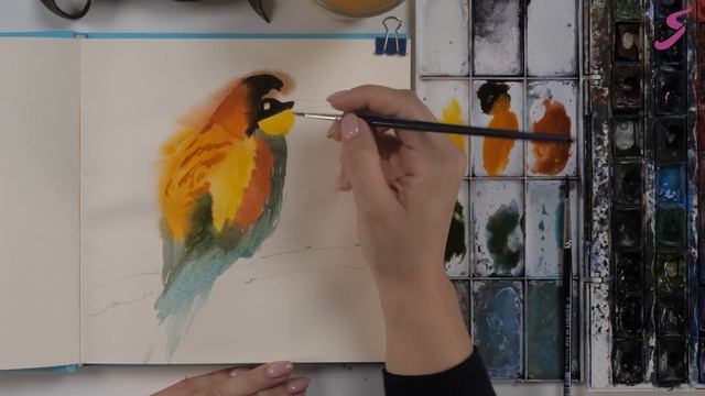 Экспресс-урок по акварельному скетчингу «Птичка» | Как нарисовать яркую птичку поэтапно