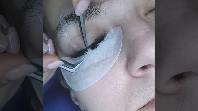 Процесс наращивания ресниц.