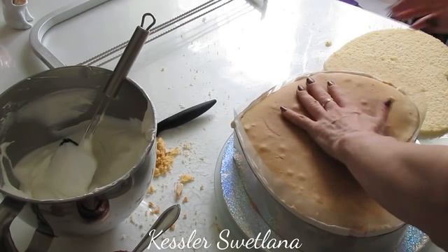 Оформление торта сердце с пломбирным кремом и кремом БЗК.