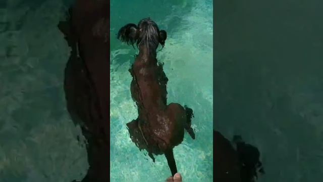 Заплывы в бассейне. Китайские хохлатые собаки.