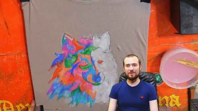 Рисунок акрилом на одежде "мистический волк"