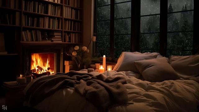 Rain On Window Sounds with Fireplace Sounds to Sleep, Relax, Study - Cozy Autumn Room Ambience