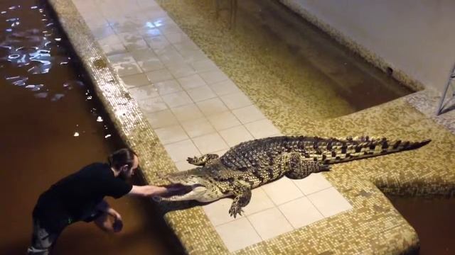ТРЮК СО ВЗРОСЛЫМ НИЛЬСКИМ КРОКОДИЛОМ, РУКА В ПАСТИ!