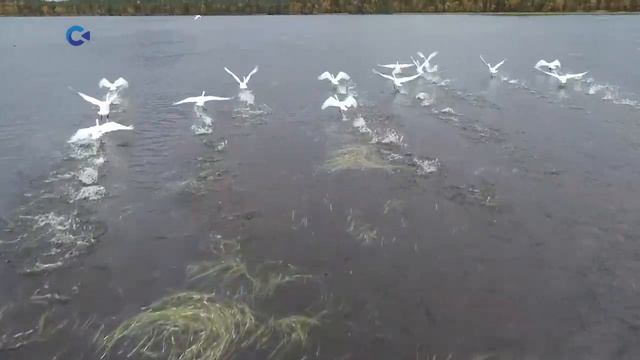 Сотни белых лебедей отправились на зимовку