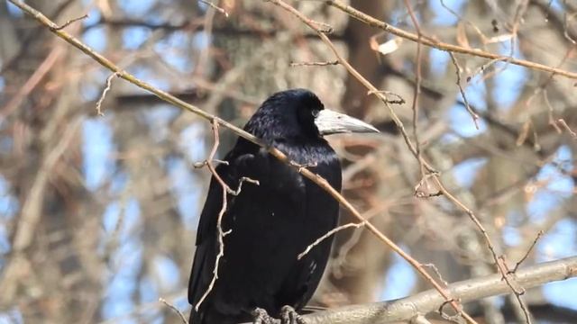 Ворона сидит на ветке.