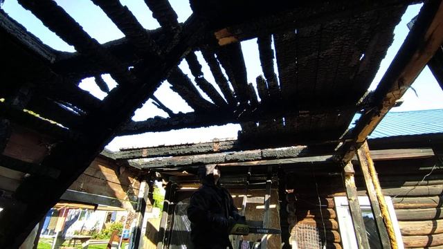 По маленьку разбираю двух этажную каркасную пристройку после пожара