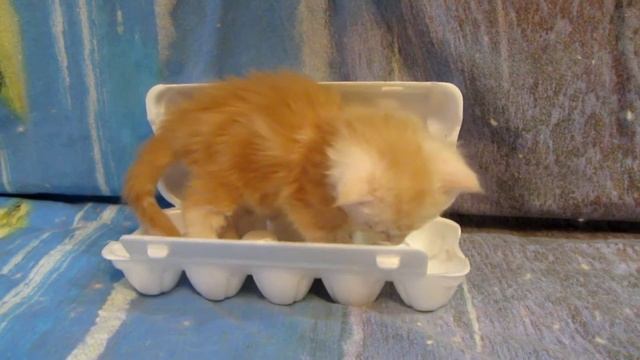 Kitten in the packaging for eggs.Котенок в упаковке для яиц.