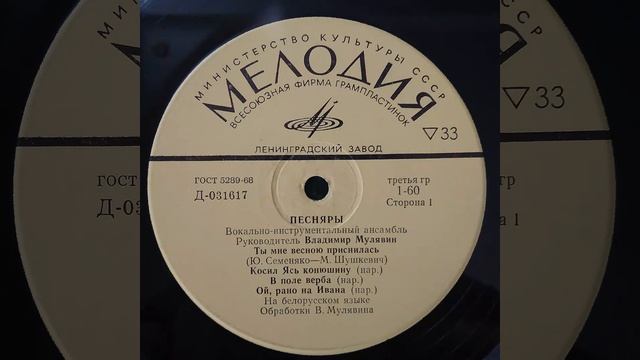 ПЕСНЯРЫ. ВИА.Руководитель В.Мулявин. Ты мне весною приснилась и др. 1 сторона. Д 031617—031618.Вини